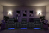 Transport yourself to a state of elevated relaxation with this Zen power reclining massage home theatre sectional. As you set to immerse yourself in a great film, smooth faux leather and high-density foam cushions envelope you in utmost comfort. Set the mood with soft LED lighting and bask in the convenience offered by the wireless USB charging port. Plus, keep your snacks and remotes close by in the storage console and armrests. Enjoy simple heated seating, therapeutic massaging and power reclining as you treat yourself to the best form of relaxation with the Zen and infuse tranquility into your home.