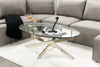 Inspired by vintage motifs of the 1950s, the Zila coffee table revives classic mid-century modern design in timeless style. The table's strong, interlaced-metal frame supports a clear, tempered glass tabletop for a delicate, weightless look. Effortless, fashion-forward style defines the Zila, and thanks to its elegant appearance, it is the perfect stage for your favourite odds and ends.