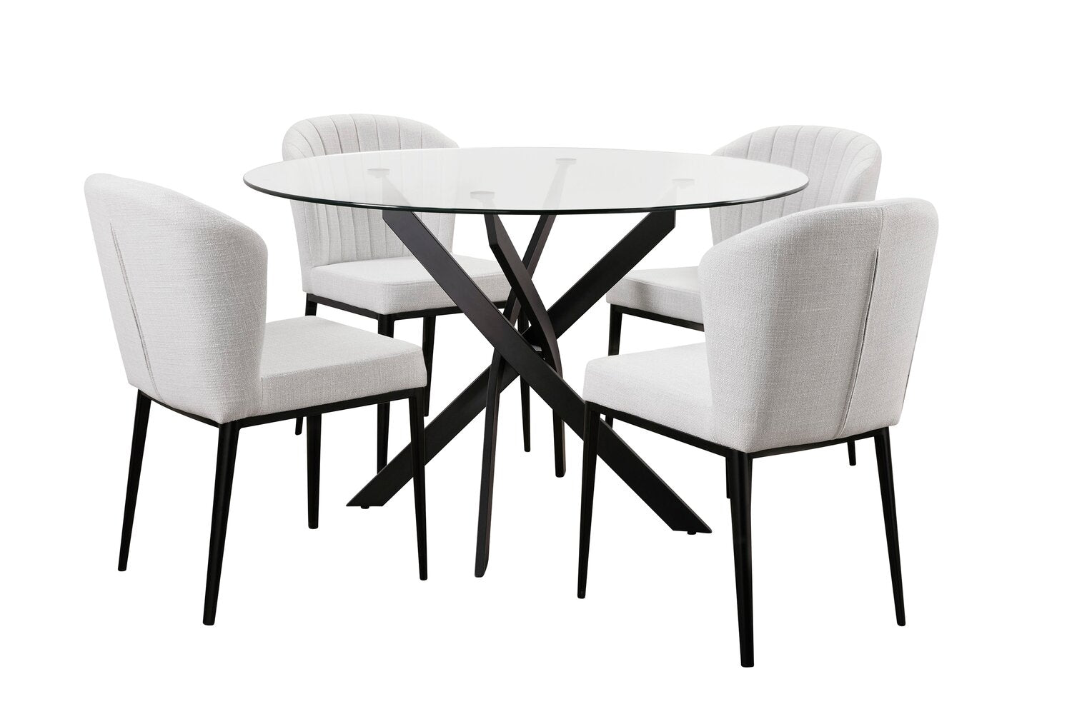 | Sold Separately | Matching Zoe dining chairs in grey and ivory. |
