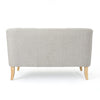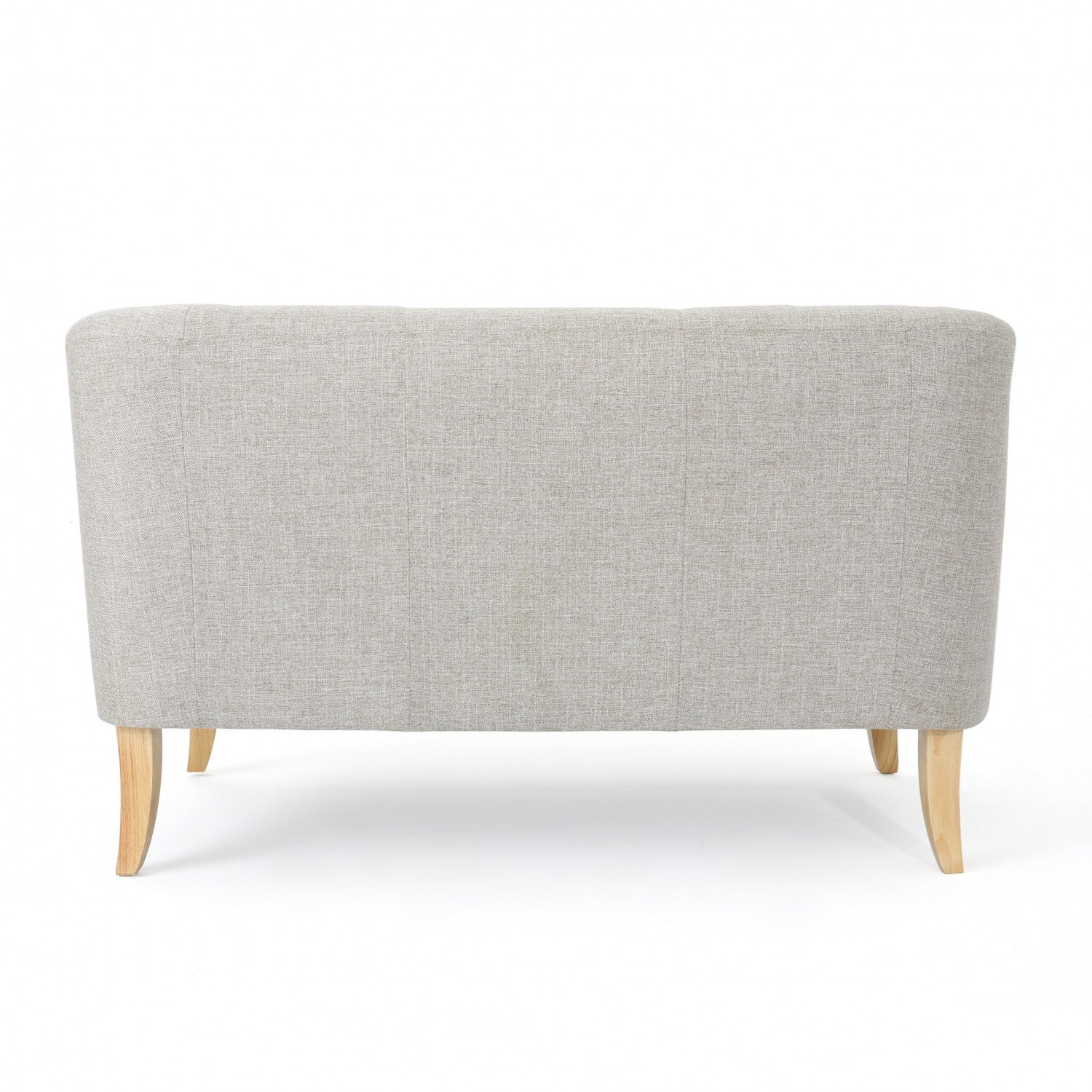 Upgrade your space with this elegant mid-century modern loveseat, featuring clean lines and beautifully flared wood legs. Upholstered in soft, durable beige polyester fabric,it offers both timeless style and lasting comfort. The high-density foam cushions deliver a plush seating experience,while the solid wood frame ensures strength and stability. Ideal for small spaces, this loveseat is perfect for living rooms, bedrooms,or entryways. Easy to assemble with included tools and instructions,it brings refined charm to any room with minimal effort.