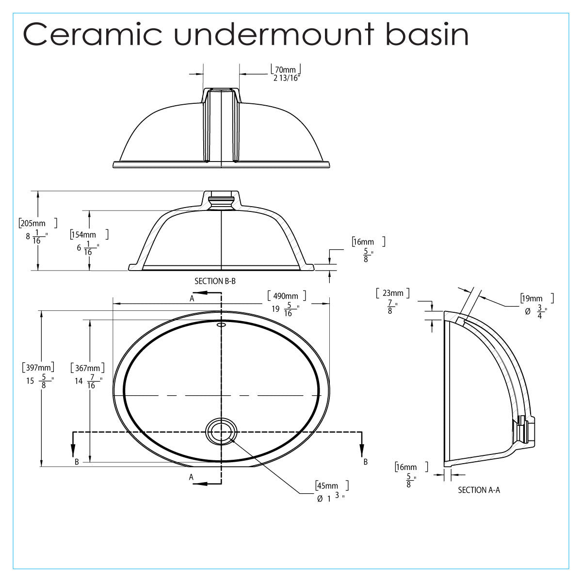 Stylish simplicity makes this white sink an inspired option for modern and traditional bathrooms alike. Crafted entirely from ceramic, the oval shape of the sink is designed for everyday elegance With a smooth glazed Finish and a curved inner basin that’s easy to clean. The undermount format gives the bathroom sink a seamless appearance when installed beneath vanity tops and counters.
